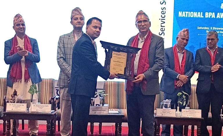 काठमाडौं – मुक्तिनाथ विकास बैंकले उत्कृष्ट वार्षिक प्रतिवेदन प्रस्तुत गरे बापत नेपाल चार्टर्ड एकाउन्टेन्ट्स संस्थाद्वारा लगातार पाँचौं पटक पुरस्कृत भएको छ । नेपाल चार्टर्ड एकाउन्टेन्ट्स संस्थाले हरेक वर्ष नेपाल वित्तीय प्रतिवेदन मान प्रणाली अन्तर्गत वित्तीय विवरण प्रकाशन गर्ने उत्कृष्ट संस्थाहरुलाई प्रदान गर्दै आएको गरिमामय राष्ट्रिय उत्कृष्ट वार्षिक प्रतिवेदन प्रस्तुत पुरस्कारमा विभिन्न विधाहरुमध्ये वित्तीय क्षेत्र तर्फ आर्थिक वर्ष २०७९/०८० को लागि मुक्तिनाथ विकास बैंक गोल्ड अवार्डबाट सम्मानित भएको छ । यो पुरस्कारबाट मुक्तिनाथ बैंक आर्थिक वर्ष २०७५/०७६ , २०७६/०७७ , २०७७/०७८ , २०७८/०७९ र २०७९/०८० गरि लगातार पाँचौं पटक पुरस्कृत भएको हो ।