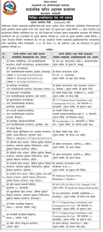 कार्यालयले विभिन्न सार्वजनिक निकायबाट खराब सूचीमा राख्नका लागि सिफारिसमा परेका कम्पनीहरूलाई खराब सूचीमा राख्न नपर्नाको कारणसहित सात दिनभित्र लिखित स्पष्टीकरण पेस गर्न भनेको हो।