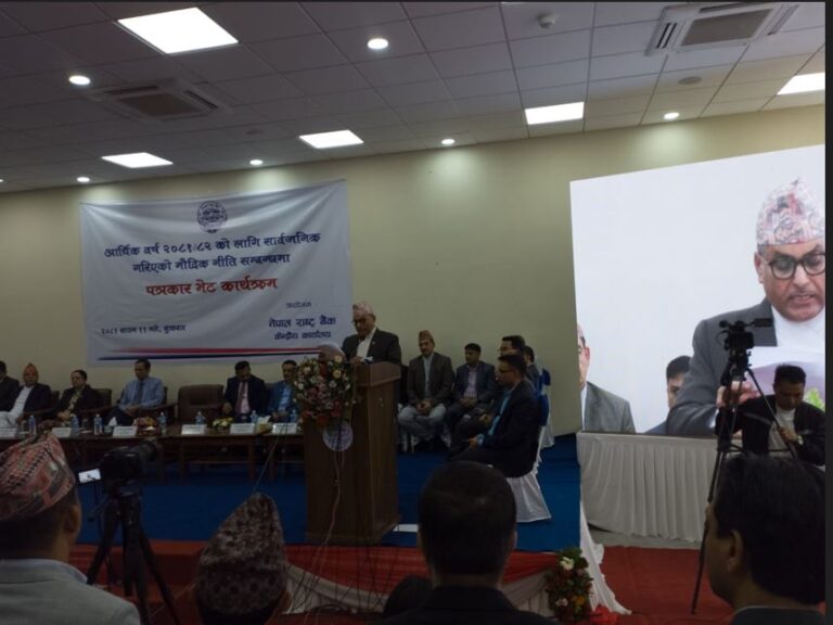 काठमाडौं – नेपाल राष्ट्र बैंकले मुद्रास्फितीलाई ५ प्रतिशतको हाराहारीमा कायम गर्ने जनाएको छ । राष्ट्र बैंकले आर्थिक वर्ष २०८१/८२ को मौद्रिक नीति सार्वजनिक गर्दै यस्तो जनाएको हो । आर्थिक वर्ष २०८०/८१ को पहिलो त्रयमाससम्म मूल्यमा चाप परेको भएतापनि दोस्रो त्रयमासदेखि क्रमिक रुपमा सुधार हुँदै २०८१ जेठमा वार्षिक विन्दुगत उपभोक्ता मुद्रास्फीति ४.१७ प्रतिशत रहेको छ । यस अवधिमा खाद्य तथा पेय पदार्थ समूहको मुद्रास्फीतिको तुलनामा गैरखाद्य तथा सेवा समूहको मुद्रास्फीतिमा बढी सुधार देखिएको छ ।