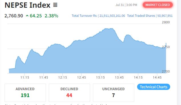 शेयर बजारमा २१ अर्ब ९१ करोडको किर्तिमानी कारोबार