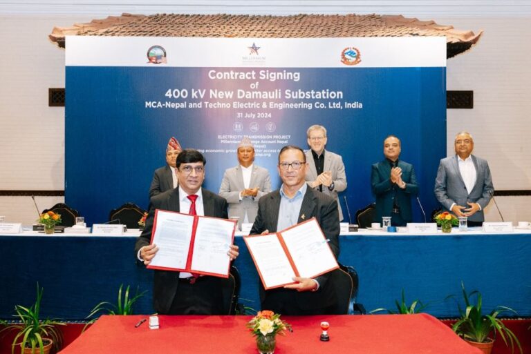 काठमाडौं – एमसिए–नेपालले तनहुँ जिल्लाको दमौलीमा ४०० केभी क्षमताको नयाँ दमौली सबस्टेशन निर्माणका लागि भारतको टेक्नो इलेक्ट्रिक एण्ड इञ्जिनियरिङ लिमिटेडसँग ३.८८ करोड अमेरिकी डलरको ठेक्का सम्झौता सम्पन्न भएको घोषणा सगौरव गरेको छ । यो सम्झौता सँग–सँगै एमसीसी नेपाल कम्प्याक्ट अन्तर्गत निर्माण गर्न लागिएका तीनवटै ४०० केभी सबस्टेशन निर्माणसम्बन्धी सम्झौता सम्पन्न भएको छ ।
