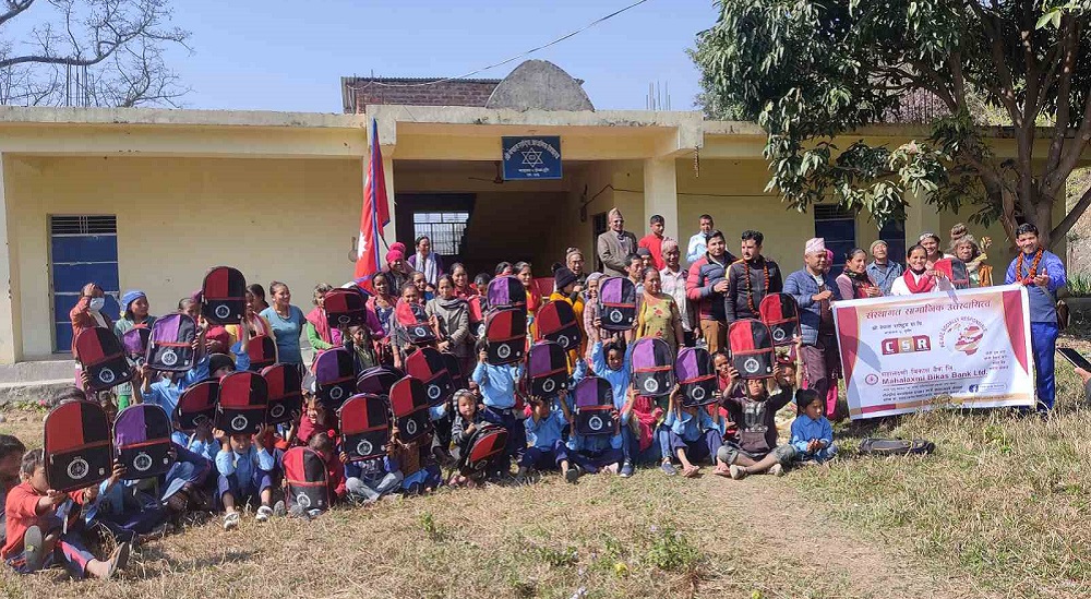 बैंकको सुर्खेत शाखाले ‘एक शाखा, एक सामाजिक उत्तरदायित्व’ अन्तर्गत सुर्खेतको बराहताल गाउँपालिका वडा नं. २ डोप्कामा रहेको उक्त विद्यालयका विद्यार्थीलाई झोला वितरण गरेको हो ।