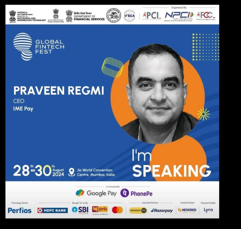 काठमाडौं – आईएमई पेका प्रमुख कार्यकारी अधिकृत (सीईओ) प्रविण रेग्मी ‘ग्लोबल फिन्टेक फेस्ट २०२४ मा वक्ताको रूपमा सहभागी हुने भएका छन् । आगामी अगस्ट २८ देखि ३० सम्म भारतको मुम्बईमा आयोजना हुने फेस्टमा रेग्मी वक्ताको रूपमा सहभागी हुने भएका हुन् । पेमेन्ट सिस्टम, बैंकिङ्ग, टेक्नोलोजी र टेलिकमका क्षेत्रमा विशेष दख्खल राख्ने रेग्मीसँग विभिन्न बैंक तथा वित्तीय संस्थामा डेढ दशकभन्दा बढीको कार्यानुभव छ ।