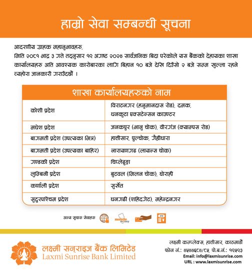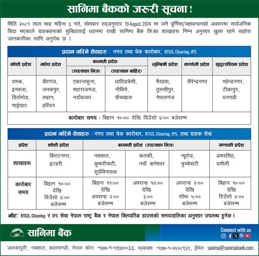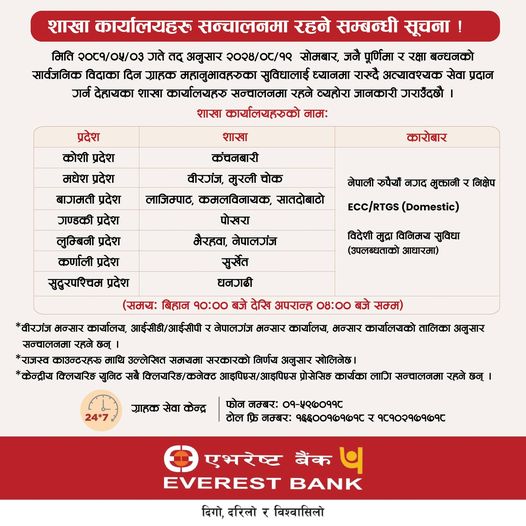 ग्राहकको आवश्यकतालाई केन्द्रमा राख्दै केही वाणिज्य बैंक तथा विकास बैंकले बैंकिङ्ग सेवा दिइरहेका हुन् । यद्यपि, सेवा दिने सबै बैंकका सबै शाखा भने खुलेका छैनन् । केही बैंकहरूले सीमित शाखाबाट सेवा दिइरहेका छन्।