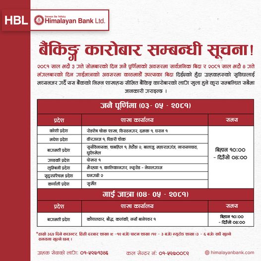कुन–कुन बैंकले दिइरहेका छन् सार्वजनिक बिदामा सेवा ?