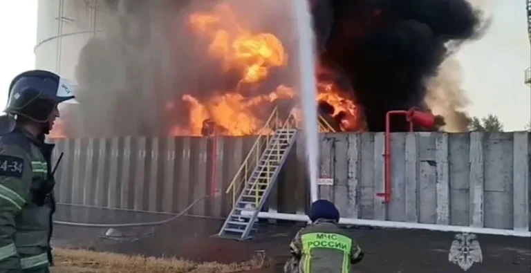युक्रेनी ड्रोन आक्रमणपछि रूसी इन्धन भण्डारमा आगलागी