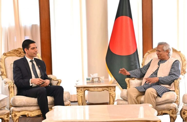 बङ्गलादेशका लागि नेपालका राजदूत घनश्याम भण्डारीले त्यहाँको अन्तरिम सरकारका प्रमुख सल्लाहकार मुहम्मद युनुससँग मङ्गलबार भएको शिष्टाचार भेटमा द्विदेशीय सम्बन्धलाई नवीकृत गर्दै आर्थिक सहकार्य र साझेदारीमा जोड दिएका ढाकास्थित नेपाली राजदूतावासले जनाएको छ ।