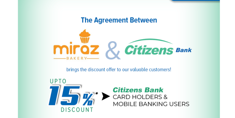 सिटिजन्स बैंकका ग्राहकलाई मिराज बेकरीमा १५ प्रतिशत छुट
