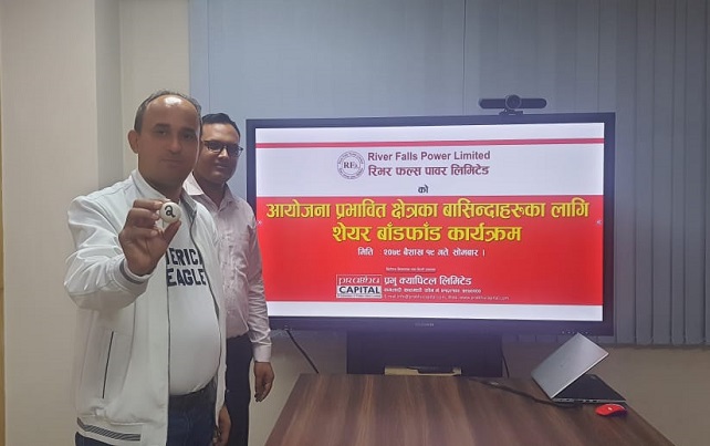 रिभर फल्स पावर लिमिटेडले आफ्नो आयोजनाका प्रभावित संखुवासभाका स्थानीय जिल्लावासीले आवेदन दिन पाउनेगरी २०७८ चैत्र २७ गते देखि २०७९ बैशाख ११ गतेसम्म स्थानीयलाई ७ लाख कित्ता सेयरको सार्वजनिक निष्काशन खुला गरेको थियो ।