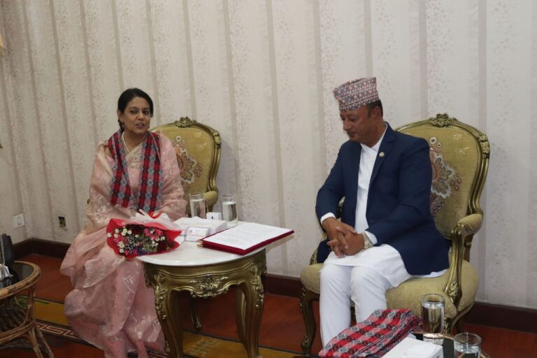 काठमाडौं – उर्जा, जलस्रोत तथा सिंचाईमन्त्री दीपक खड्का र बङ्गलादेशका अन्तरिम सरकारका वन, वातावरण, जलवायु परिवर्तन तथा जलस्रोत मन्त्री सैयदा रिजवाना हसनबीच भेटवार्ता भएको छ । काठमाडौंमा बिहिबार हुन लागेको नेपाल–बङ्गलादेश उर्जा व्यापार सम्झौताका लागि बङ्गलादेशको अन्तरिम सरकारको मन्त्रीको हैसियतले नेपाल आएकी हसनले आज सिंहदरबास्थित उर्जा मन्त्रालयमा उर्जा, जलस्रोत तथा सिंचाईमन्त्री खड्कासँग भेट गरेका हुन् ।
