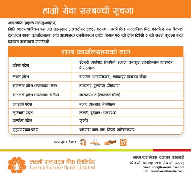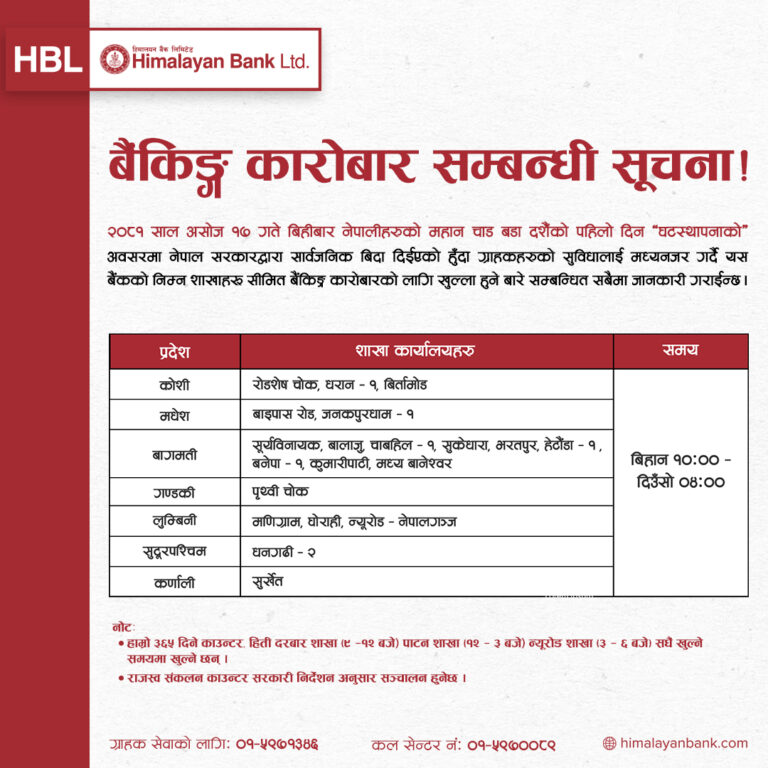सार्वजनिक बिदाको दिन यी बैंकले दिदैछन् बैंकिङ्ग सेवा