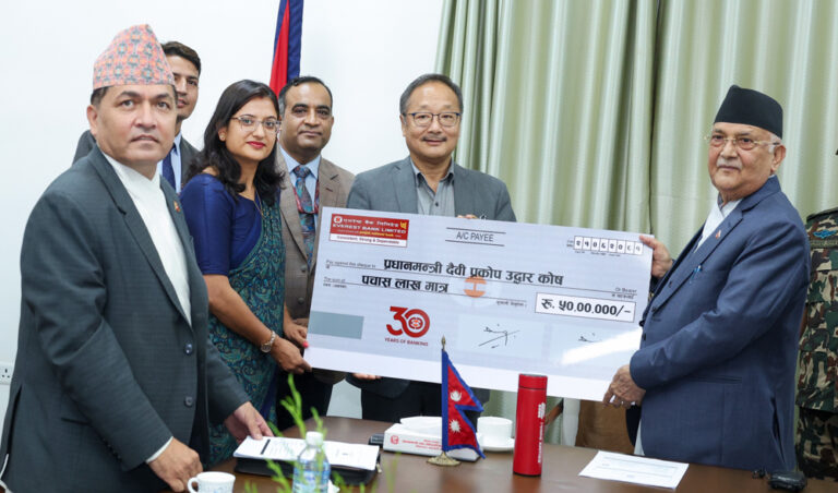 बैंकका प्रमुख कार्यकारी अधिकृत (सीईओ) सुदेश खालिङले प्रधानमन्त्री तथा मन्त्रिपरिषद् कार्यालय, सिंहदरबारमा सम्माननीय प्रधानमन्त्री केपी शर्मा ओलीलाई उक्त रकमको चेक हस्तान्तरण गरे ।