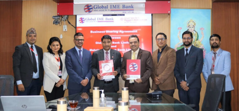 काठमाडौं – ग्लोबल आइएमई बैंक र महालक्ष्मी विकास बैंकबीच गैरकोषमा आधारित बैंकिङ्ग सुविधा उपलब्ध गराउने सम्झौतापत्रमा हस्ताक्षर सम्पत्र भएको छ। सम्झौतापत्रमा ग्लोबल आइएमई बैंकका प्रमुख कार्यकारी अधिकृत सुरेन्द्रराज रेग्मी र महालक्ष्मी विकास बैंकका प्रमुख कार्यकारी अधिकृत दिपेश लम्सालले हस्ताक्षर गरेका छन्।