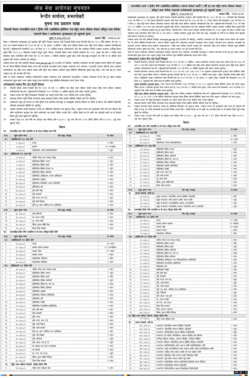 आयोगले निजामती सेवा, सङ्घीय संसद् सेवाका राजपत्राङ्कित प्रथम र द्धितिय श्रेणी, स्वास्थ्य सेवाका एघारौँ र नवौँ तह तथा राष्ट्रिय मानव अधिकार सेवाका अधिकृत पदको आन्तरिक तथा खुला प्रतियोगितात्मक परीक्षाको विज्ञापन खुला गरेको हो ।