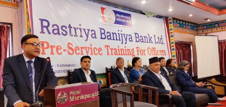 काठमाडौं – राष्ट्रिय वाणिज्य बैंकले ११७ जना नवनियुक्त अधिकृतहरूलाई पूर्व सेवाकालीन तालिम दिएको छ । बैंकले लोक सेवा आयोगबाट सञ्चालित लिखित परीक्षा तथा अन्तरवार्ताबाट प्रदेशगत रूपमा छनौट भएका ११७ जना नवनियुक्त अधिकृतहरूलाई चौध दिने पूर्व सेवाकालीन तालिम बिहीबारबाट काठमाडौंमा सञ्चालन गरिरहेको छ ।