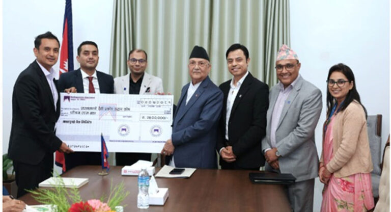 बैंकको संस्थागत सामाजिक उत्तरदायित्व अन्तर्गत बैंकका अध्यक्ष रोशन केसीले प्रधानमन्त्री केपी शर्मा ओलीलाई आइतबार २५ लाख रुपैयाँको चेक हस्तान्तरण गरेका हुन् ।