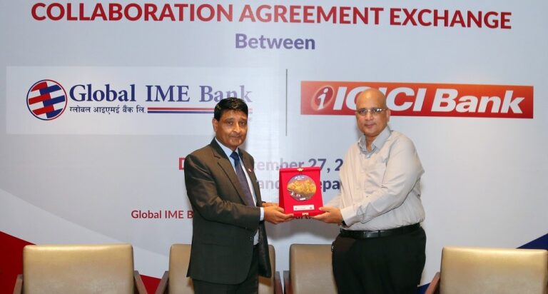 काठमाडौं – ग्लोबल आइएमई बैंक र आईसीआईसीआई बैंक क्यानाडाबीच विभित्र बैंकिङ्ग सेवासम्बन्धी सहकार्यका लागि समझदारी पत्रमा हस्ताक्षर भएको छ । यससम्बन्धी सम्झौतामा ग्लोबल आइएमई बैंकका प्रमुख कार्यकारी अधिकृत सुरेन्द्रराज रेग्मी र आईसीआईसीआई बैंक क्यानाडाका व्यवसाय प्रमुख हिमादर मड्डीपत्लाले हस्ताक्षर गरे ।