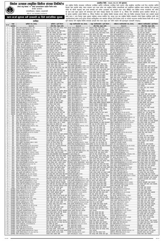 काठमाडौंं – निर्धन उत्थान लघुवित्त वित्तीय संस्थाले समयमा ऋण नतिर्ने १२५ ऋणीहरूको नाम सार्वजनिक गरेको छ। संस्थाले ऋणीहरूलाई ३५ दिनको समय सीमा तोक्दै, यस अवधिमा सम्पर्क गरी बक्यौता चुक्ता गर्न आग्रह गर्दै नाम सार्वजनिक गरेकाे हाे ।