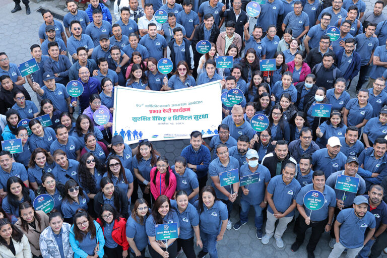 केन्द्रिय कार्यालयबाट शुरु भएको प्रभातफेरी भाटभटेनी, टंगाल, लक्ष्मण बाबु भवन, नक्साल पेट्रोल पम्प, नारायण चौर, नागपोखरी, उत्तरढोका, गैरीधारा हुँदै बैंकको केन्द्रिय कार्यालय, बालुवाटारमा आएर सम्पन्न गरिएको थियो । यस प्रभातफेरी कार्यक्रममा बैंकले डिजिटल साक्षरता सम्बन्धि विभिन्न व्यानरहरुद्वारा आम जनताहरुमा जनचेतना समेत पुर्याएकाे थियो ।