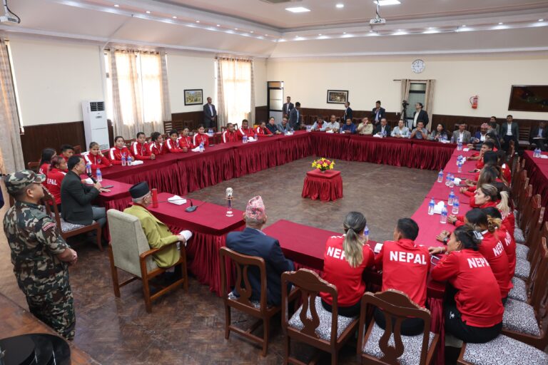 काठमाडौं – प्रधानमन्त्री केपी शर्मा ओलीले साफ महिला च्याम्पियनसिप फुुटबलमा उपविजेता बनेको नेपाली टोलीलाई नेपाल सरकारले तिहारको बिदालगत्तै पुरस्कार प्रदान गर्ने घोषणा गरेका छन् । प्रधानमन्त्री निवास, बालुवाटारमा आज राष्ट्रिय टोलीका महिला फुुटबल खेलाडीसँगको भेटघाटका क्रममा प्रधानमन्त्री ओलीले खेल क्षेत्रको विकास र खेलाडीलाई प्रोत्साहनमा कुनै कञ्जुस्याई नगर्ने स्पष्ट गर्दै तिहारलगत्तै पुरस्कार प्रदान गर्ने जानकारी गरेका हुन् ।