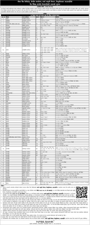 काठमाडौं – नबिल बैंकले देशभर विभिन्न स्थानमा आफ्नो नाममा रहेका घरजग्गा बेच्ने भएको छ । बैंकको कर्जा असुली विभागले बैंकको नाममा रहेको गैर बैंकिङ्ग सम्पत्ति बेच्न लागेको सूचना निकालेको हो ।