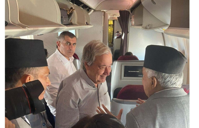 बाकु (अजरबैजान) – राष्ट्रपति रामचन्द्र पौडेल र संयुक्त राष्ट्रसंघका महासचिव एन्टेनियो गुटेरेसबीच संक्षिप्त भेट भएको छ । जलवायु परिवर्तनसम्बन्धी संयुक्त राष्ट्र संघीय संरचना महासन्धि पक्ष राष्ट्रहरुको २९औँ सम्मेलन (कोप–२९) मा भाग लिन कतारको दोहाबाट अजरबैजानको बाकु जानेक्रममा जहाजमा उनीहरुबीच भेट भएको हो ।