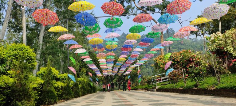 रङ्गीविरङ्गी छाताले सिँगारियो झापाको धार्मिक पर्यटकीयस्थल दोमुखा