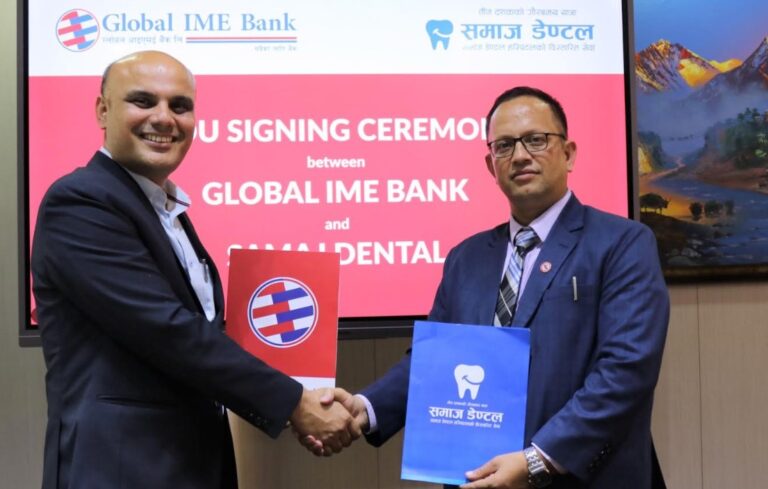 काठमाडौं – ग्लोबल आइएमई बैंक लिमिटेडका ग्राहकले समाज डेन्टल अस्पतालमा छुट पाउने भएका छन् । यससम्बन्धी सम्झौतामा बैंकका ट्रान्जेक्सन बैंकिङ्ग सेल्स तथा बिजनेश प्रमुख प्रकाश पौडेल र समाज डेन्टल अस्पतालका प्रबन्ध निर्देशक शंकु घिमिरेले हस्ताक्षर गरेका छन्।