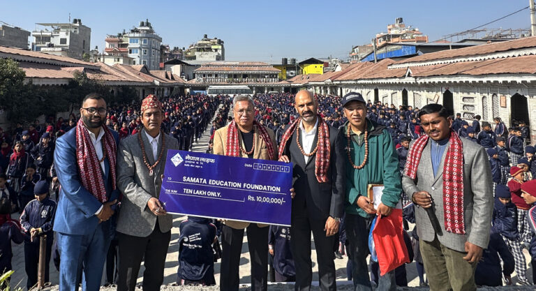 काठमाडौं – नेपाल लाइफ इन्स्योरेन्सले संस्थागत सामाजिक उत्तरदायित्व कार्यक्रमअन्तर्गत समता एजुकेसन फाउन्डेसनलाई १० लाख रुपैयाँ रकम प्रदान गरेको छ । कम्पनीका सञ्चालक कमलेशकुमार अग्रवाल र प्रमुख कार्यकारी अधिकृत (सीईओ) प्रवीण रमण पराजुलीले समता एजुकेसन फाउन्डेसनका अध्यक्ष दिपक सन्जेललाई एक समारोहका बीच १० लाख नगदको चेक हस्तान्तरण गरेका छन् ।