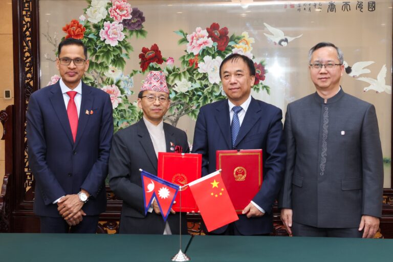 काठमाडौं – नेपाल र चीनबीच बेल्ट एवं रोड सहकार्यको फ्रेमवर्कमा हस्ताक्षर भएको छ। आज चीनको बेइजिङमा आयोजित विशेष समारोहमा नेपाल सरकार र चीन सरकार बीचको बेल्ट एवं रोड सहकार्यको फ्रेमवर्कमा हस्ताक्षर भएको हो।