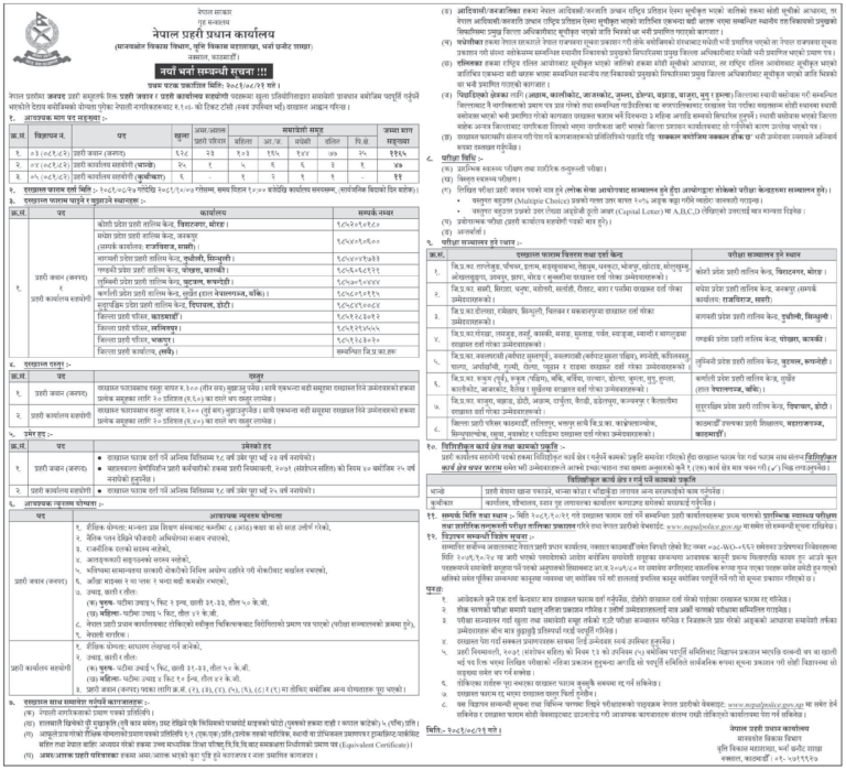 कार्यालयले प्रहरी जवानतर्फ ११६५ जना, प्रहरी कार्यालय सहयोगी (भान्से) मा ४७ जना र ११ जना कुचीकार माग गरेको छ ।सातवटै प्रदेश कार्यालयबाट योग्य नेपाली नागरिकले मंसिर २७ गतेदेखि माघ ७ गतेसम्म आवेदन दिन सक्नेछन् ।
