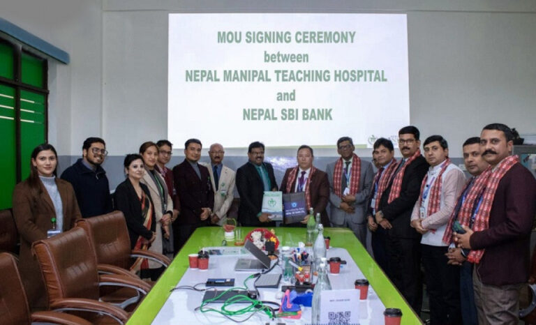 काठमाडौं – नेपाल एसबीआई बैंक र पोखरामा रहेको मणिपाल एजुकेसन एण्ड मेडिकल ग्रुप (नेपाल) प्रा.लिबीच नेपाल एसबिआई बैंकका सम्पूर्ण ग्राहकहरुलाई लक्षित गरी मणिपाल टिचिङ हस्पिटल र मणिपाल कलेज अफ मेडिकल साईन्स्मा विभिन्न स्वास्थ्य सेवाहरुमा छुट प्रदान गर्ने सम्झौता भएको छ ।
