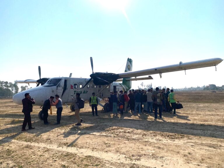 कैलाली – सत्ताइस वर्षदेखि बन्द अवस्थामा रहेको कैलालीको टीकापुर विमानस्थल नियमित सञ्चालनमा आएको छ । आज तारा एयरको वाइटी १७०१ नम्बरको ट्वीनअटर विमानमा चालक दलका तीनसहित छ कर्मचारी र १२ यात्रु बोकेको विमान दिउँसो १ः४४ बजे टीकापुर विमानस्थलमा अवतरण गरेसँगै विमानस्थलमा नियमित हवाई उडान सुरू भएको हो ।