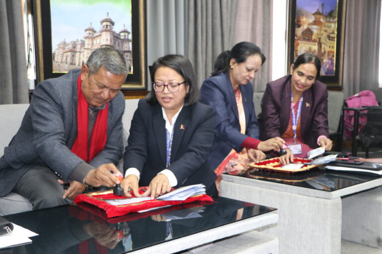 काठमाडौं – हुलाक सेवा विभागले दुई नयाँ टिकट प्रचलनमा ल्याएको छ । हुलाक सेवा विभागले ‘एक सय ५०औँ विश्व हुलाक दिवस’, र ‘इन्टरपोल एक सयौँ वार्षिकोत्सव’ शीर्षकका दुई टिकटमा आज सञ्चार तथा सूचना प्रविधिमन्त्री पृथ्वी सुब्बा गुरुङ र मन्त्रालयका सचिव राधिका अर्यालद्वारा टाँचा प्रदान गरिएको छ ।