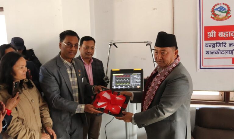 काठमाडौं – चन्द्रागिरि नगर अस्पताल थानकोटमा ‘भेन्टिलेटर’ सेवा सञ्चालनमा आउने भएको छ । स्वास्थ्य तथा जनसङ्ख्या मन्त्रालयले सो अस्पताललाई जीवन रक्षार्थ उपयोग हुने अतिसंवेदशील सो उपकरण प्रदान गरेको हो । बागमती प्रदेशका मुख्यमन्त्री बहादुरसिंह लामा (तामाङ)ले आज यहाँ आयोजित कार्यक्रममा चन्द्रागिरि नगरपालिकाका प्रमुख घनश्याम गिरीलाई सो उपकरण हस्तान्तरण गरे ।