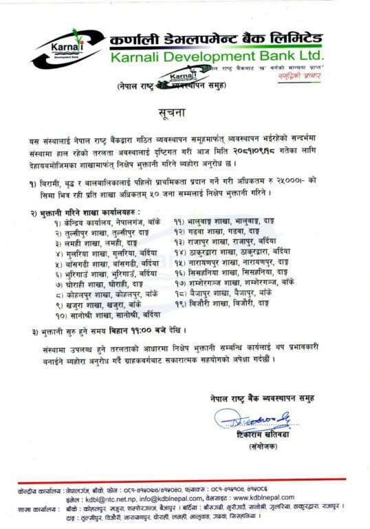 कर्णाली बैंकले आज कुन – कुन शाखाबाट बचतकर्ताको रकम फिर्ता गर्दैछ ?