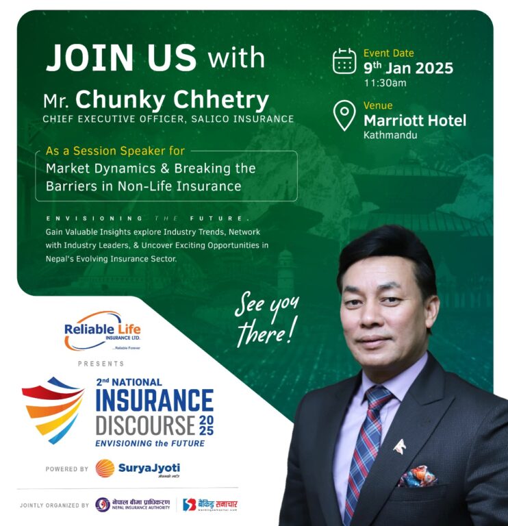 बैंकिङ्ग समाचार डट्कमको आयोजना तथा रिलायबल लाइफ इन्स्योरेन्सको मुख्य प्रायोजनमा पुष २५ गते दोस्रो नेशनल इन्स्योरेन्स डिस्कोर्श २०२५ आयोजना हुने भएको हो । अर्थमन्त्री विष्णु प्रसाद पौडेलद्वारा कार्यक्रमको उद्घाटन गरिनेछ । उक्त कार्यक्रममा नियामकीय निकाय, बीमा कम्पनीहरु, बैंक तथा वित्तीय क्षेत्र, बीमा विज्ञ तथा अन्य क्षेत्रका व्यक्तित्वहरुको उपस्थिति रहने छ । सो कार्यक्रममा जीवन बीमा क्षेत्रको विकास र बिस्तारका रणनीति तथा परिदृश्यहरु, निर्जीवन बीमा क्षेत्रमा बजारको गतिशीलता र अवरोधहरु, बीमामा प्रविधिको उदय चुनौती र अवसरहरु, नेपाली पुनर्बीमा बजारको सीमा विस्तार व्यवसाय वृद्धिमा छलफल हुनेछ । दोस्रो नेशनल इन्स्योरेन्स डिस्कोर्श २०२५ ले बीमा क्षेत्रका समस्याहरुको समाधान खोज्न सुधार गर्न महत्वपूर्ण योगदान पुर्याउने अपेक्षा गरिएको छ ।