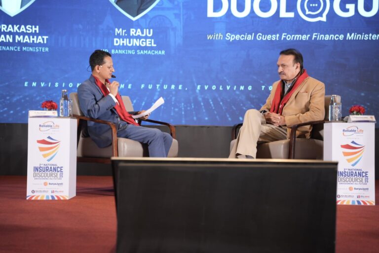 काठमाडौं – पूर्व अर्थमन्त्री डा. प्रकाशशरण महतले जोखिम व्यवस्थापनको लागि बीमा अपरिहार्य रहेको बताएका छन्। दोस्रो नेशनल इन्स्योरेन्स डिस्कोर्श-२०२५ को अन्तिम सत्रमा बैंकिङ्ग समाचारका प्रबन्धक निर्देशक राजु ढुंगेलसँग ‘डुओलग’ छलफलमा सामेल हुँदै सबै क्षेत्रको बीमा गर्न अपरिहार्य रहेको बताएका हुन्।