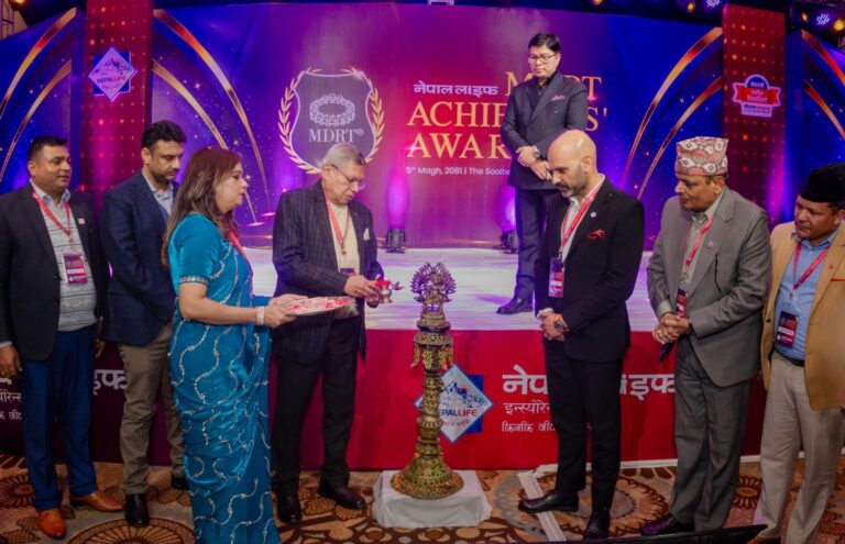 काठमाडौं – नेपाल लाइफ इन्स्योरेन्स कम्पनीले मिति २०८१ साल माघ ५ गते द सोल्टी काठमाडौंमा ‘एम.डी.आर.टी’ अचिभर्स अवार्ड, २०२५ भव्यतापूर्वक सम्पन्न गरेको छ । सन् २०२४ को जनवरीदेखि डिसेम्बर अन्तिम सम्ममा ‘एम.डी.आर.टी २०२५ ’ का लागि योग्य भएका ९५ जना अभिकर्तालाई सम्मानित गरिएको छ । पानसमा दीप प्रज्वलन गरी कम्पनीका संचालक कमलेश कुमार अग्रवाल, संचालक शक्ति कुमार गोल्याण र कम्पनीका प्रमुख कार्यकारी अधिकृत प्रवीण रमण पराजुलीले संयुक्त रूपमा कार्यक्रमको उद्घाटन गरेका थिए ।