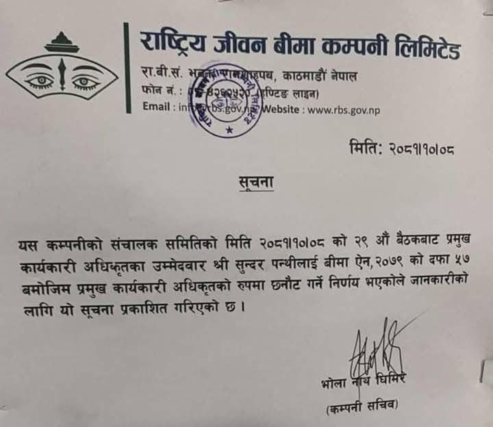 राष्ट्रिय जीवन बीमा कम्पनीको सीईओमा पन्थी