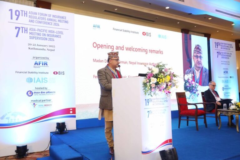 काठमाडाैं – एसियाली देशका बीमा नियामक निकायहरूको संस्था एशियन फोरम अफ इन्स्योरेन्स रेगुलेटर्स (AFIR) को १९औँ वार्षिक बैठक र बीमा नियमनसम्बन्धी सातौं उच्चस्तरीय अन्तर्राष्ट्रिय सम्मेलन काठमाडौंमा सम्पन्न भएको छ । नेपाल बीमा प्राधिकरण, इन्टरनेशनल एसोशियसन अफ इन्स्योरेन्स सुपरभाइजर (IAIS), AFIR र फाइनान्सियल स्टेबिलिटि इन्स्टिच्युट (FIS) अफ द बैंक फर इन्टरनेशनल सेटलमेन्ट्स (BIS) को संयुक्त आयोजनामा माघ ७ देखि ९ गतेसम्म चलेको यो कार्यक्रममा जलवायु परिवर्तन, प्राकृतिक विपद्, र प्राविधिक विकासबाट उत्पन्न जोखिमहरूलाई सम्बोधन गर्न महत्त्वपूर्ण छलफलहरू भएका छन् ।