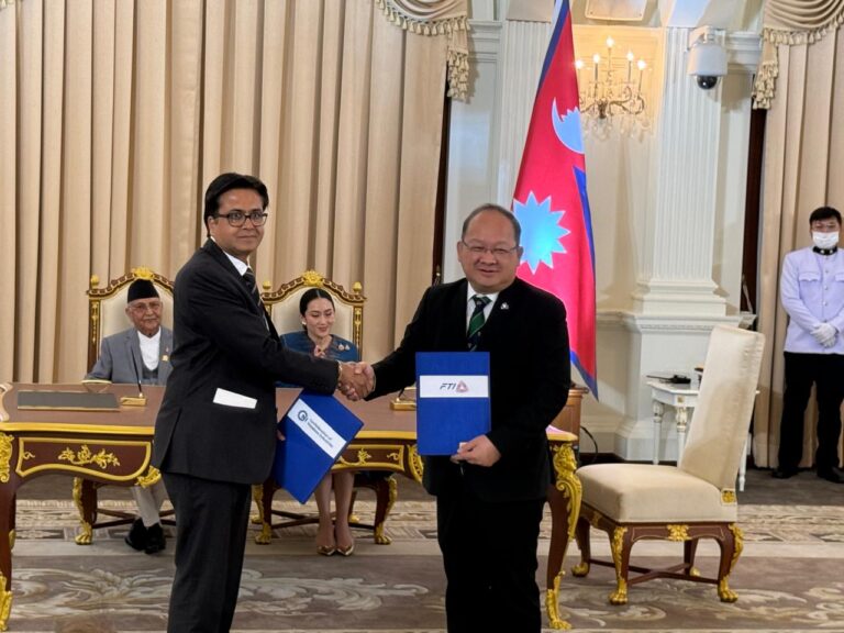 काठमाडौं – नेपाल उद्योग परिसंघ (सीएनआई) र थाई उद्योग महासंघ (एफटीआई) बीच दुई देशबीच लगानीका अवसर सिर्जना गर्दै नेपाल र थाइल्यान्डबीचको आर्थिक तथा व्यवसायिक सम्बन्ध थप सुदृढ गर्न समझदारी भएको छ। सम्माननीय प्रधानमन्त्री केपी शर्मा ओली र थाइल्याण्डका प्रधानमन्त्री पेतोङत्रान शिनावात्राको उपस्थितीमा बुधबार थाइल्याण्डको बैंककमा परिसंघका अध्यक्ष राजेश कुमार अग्रवाल र एफटीआईका अध्यक्ष क्रियेंग्राई थेननुकुलले हस्ताक्षर गरे।