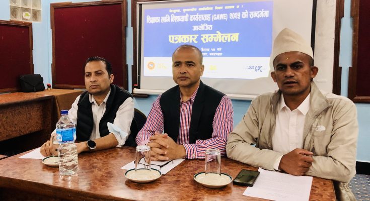 काठमाडौं– शिक्षाका लागि राष्ट्रिय अभियान नेपाल (एनसिई) ले निःशुल्क शिक्षासम्बन्धी ऐन २०७५ पूर्ण कार्यान्वयन गर्नुपर्ने मागसहित विभिन्न राजनीतिक पार्टीका प्रमुख सचेतकलाई ज्ञापनपत्र बुझाएको छ । एनसिईका प्रतिनिधिमण्डलले आज सिंहदरबारमा नेपाली कांग्रेस, नेपाल कम्युनिष्ट पार्टी (माओवादी केन्द्र) र नेकपा (एमाले) का प्रमुख सचेतक श्याम घिमिरे, हितराज पाण्डे र महेश बर्तौलालाई ज्ञापनपत्र बुझाएको हो ।
