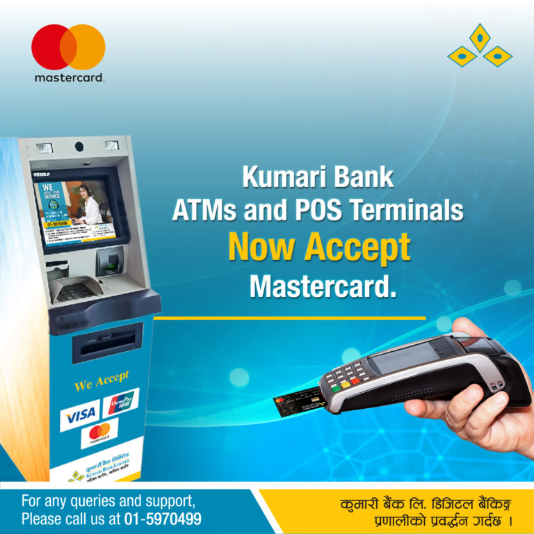 काठमाडौं – कुमारी बैंक लिमिटेडले आफ्नो एटीएम तथा पीओएस (पोइन्ट अफ सेल) टर्मिनलहरूमा मास्टर कार्ड स्वीकार गर्ने भएको छ । डिजिटल भुक्तानी प्रणालीलाई प्रवद्र्धन गर्दै ग्राहकहरुलाई थप सहज, सुरक्षित र आधुनिक बैंकिङ्गको अनुभव उपलब्ध गराउने लक्ष्यका साथ, यो सुविधा नेपाल भर कुमारी बैंकका सम्पूर्ण एटीएम तथा पीओएस टर्मिनलहरूमा उपलब्ध हुनेछ ।