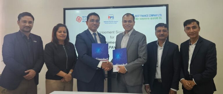 काठमाडौं – बेष्ट फाइनान्स र एनसीएचएल बीच एनपीएस– एनसीएस तथा डोमेस्टिक कार्ड योजना (नेपाल-पे) कार्ड को प्रिन्सिपल मेम्बरसिपका लागि सम्झौता भएको छ । उक्त सम्झौतापत्रमा बैंकका तर्फबाट प्रमुख कार्यकारी अधिकृत बीएन घर्ती तथा एनसीएचएलका तर्फबाट प्रमुख कार्यकारी अधिकृत निलेश मान सिंह प्रधानले हस्ताक्षर गरेका हुन् ।