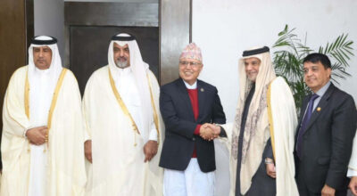 काठमाडाैं- कतार चेम्बर अफ कमर्स एन्ड इन्डस्ट्रिजका बोर्ड सदस्य मोहद अहमद एमए अलोबैदेलीको नेतृत्वमा आएको