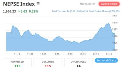काठमाडौं– साताको अन्तिम कारोबारको दिन शेयर बजारमा सुधार देखिएको छ । बुधबार झिनो अकंले घटेको