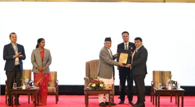 काठमाडौं– नेपाल चार्टर्ड एकाउण्टेण्ट्स संघले नेपाल उद्योग वाणिज्य महासंघका अध्यक्ष चन्द्रप्रसाद ढकाललाई कर्पोरेट एक्सिलेन्सी अवार्डबाट