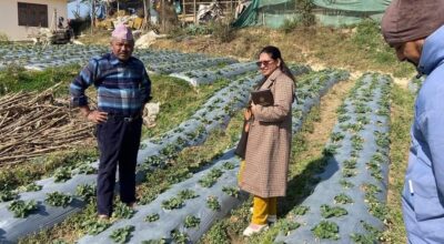 काभ्रेपलाञ्चोक–बनेपा नगरपालिका–१० का मुक्ति विष्टले तीन वर्षअघि सुरु गरेको व्यायसायिक स्ट्रबेरी (भूईंकाफल) खेती विस्तार गर्दै