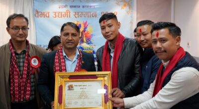 काठमाडौं – उद्यमशीलता प्रवर्द्धन तथा युवा उद्यमीहरूको सम्मान गर्ने उद्देश्यले आयोजना गरिएको ‘वैभव उद्यमी सम्मान कार्यक्रम